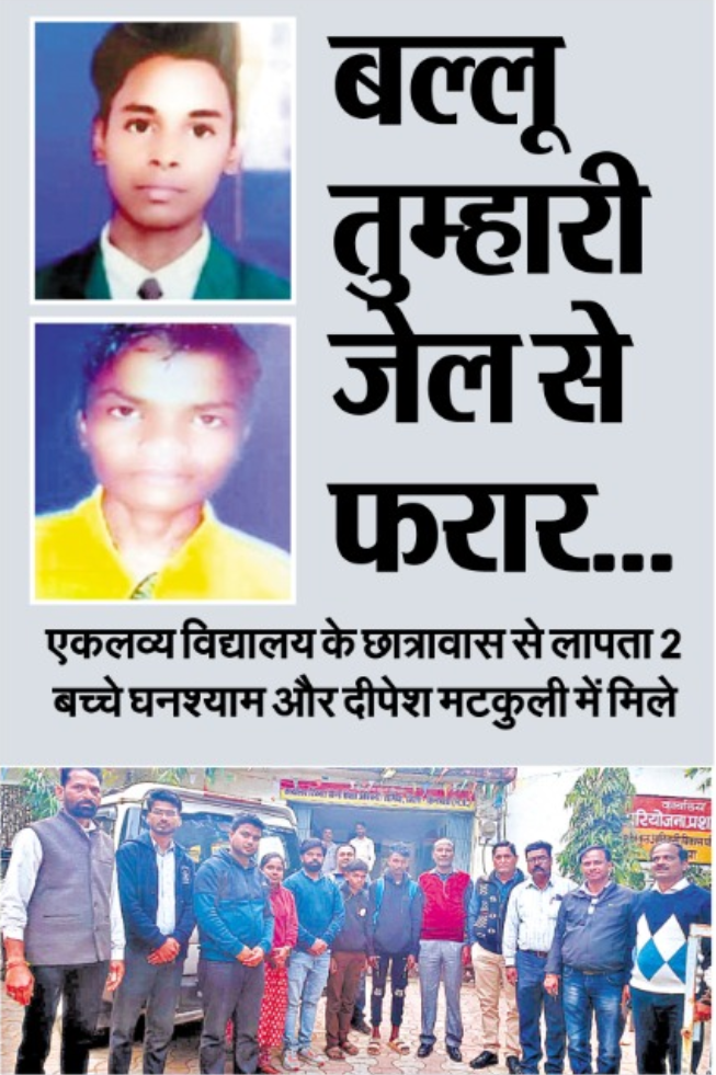 बल्लू तुम्हारी जेल से फरार… एकलव्य विद्यालय के छात्रावास से लापता 2 बच्चे घनश्याम और दीपेश मटकुली में मिले