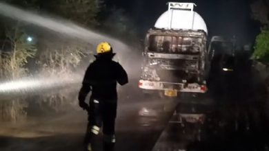 Cabin of a tanker truck filled with LPG gas burnt to ashes in Sehore