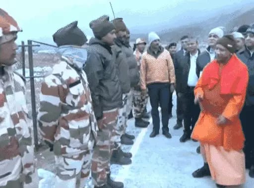 *भारत चीन सीमा पर पहुंचे सीएम योगी–* 7-8 डिग्री तापमान में 45 मिनट जवानों के साथ रहे। भारत माता की जय की नारे लगे।